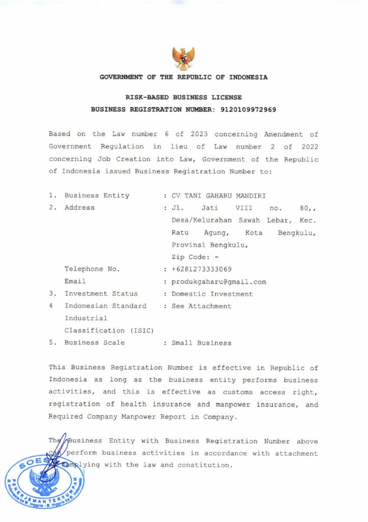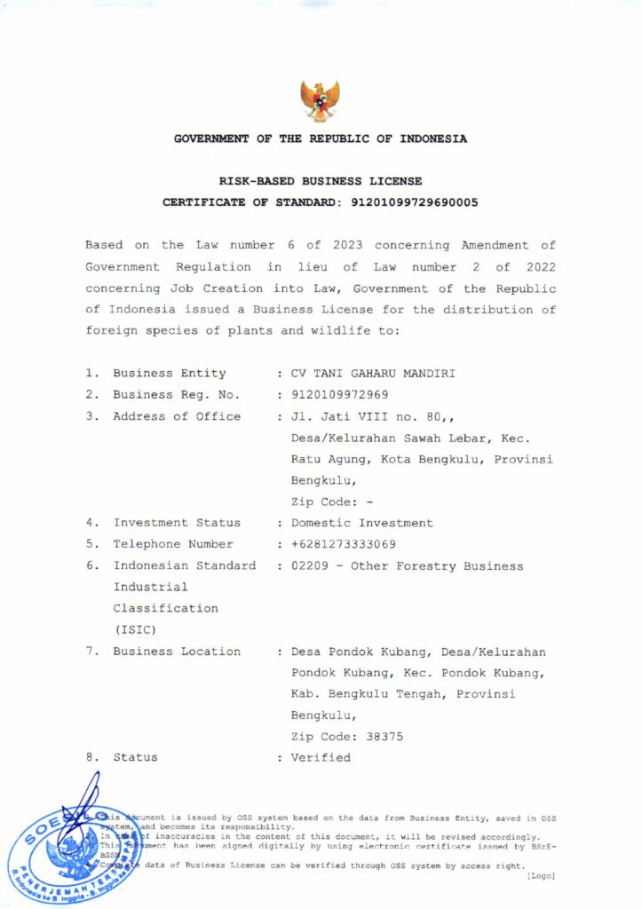 CV. Tani Gaharu Mandiri is a legally established agarwood enterprise in Indonesia, fully licensed by the government to cultivate, export, and trade agarwood products. With official permits and a strong commitment to compliance, we ensure that every stage of our operations meets national and international standards. Our dedication to sustainable cultivation and ethical business practices reflects not only our respect for nature but also our mission to deliver premium-quality agarwood to markets worldwide with credibility and trust.
