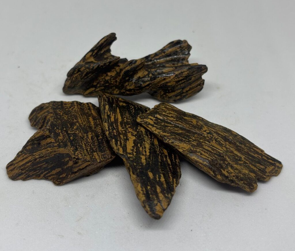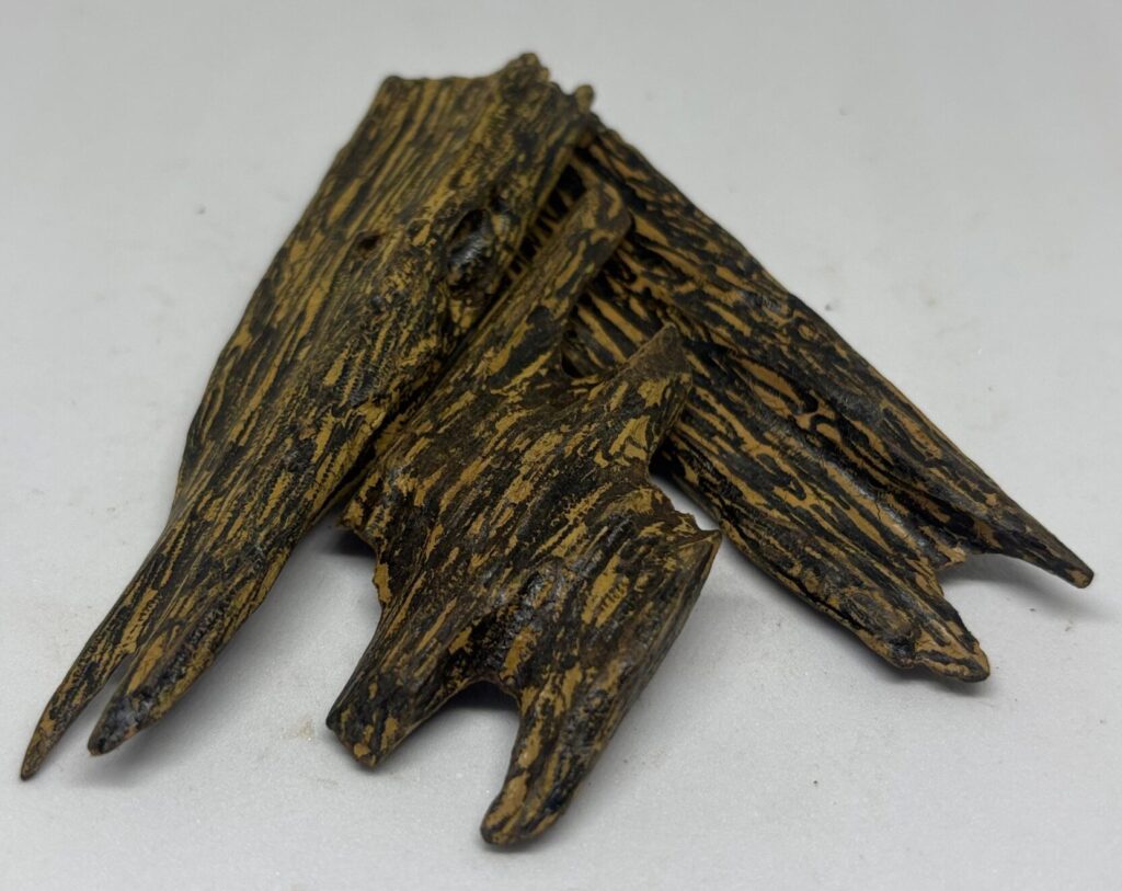 Delicately thin agarwood pieces shaped like razors, crafted to perfection and classified as Special Grade. This rare form of agarwood is highly valued, unique cut, and luxurious long-lasting fragrance.